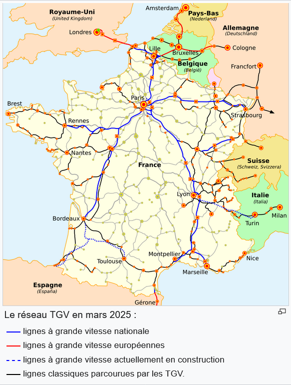 Des lignes nouvelles ont successivement été mises en service depuis pour arriver à la situation actuelle illustrée ci-après.