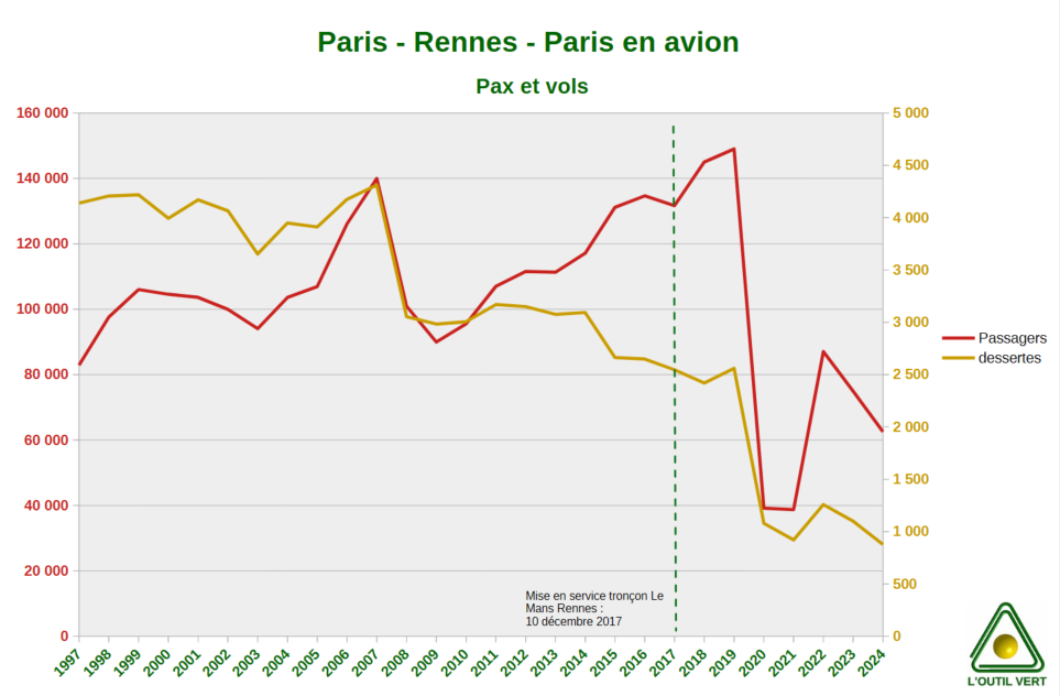 Tout cumulé, les gains de temps pour un parcours Paris – Rennes en avion sont au mieux marginaux si on inclut les durées peu compressibles (accès aéroport, formalités d’embarquement etc.).